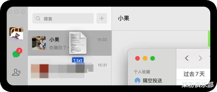 目下可获胜将要发送的文献,拖至对应的好友或群聊头像上。